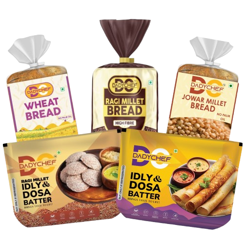 At DadyChef Foods, we bring the authentic taste of home to your table with fresh, natural, and wholesome ingredients. From idli & dosa batter to bread, phulkas, and jams, every product is carefully crafted to deliver the perfect balance of taste, nutrition, and convenience—without any preservatives.