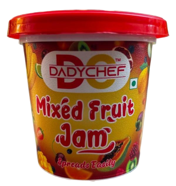 DadyChef's Mixed Fruit Jam is a sweet, thick spread made by cooking a combination of different fruits with sugar. It spreads easily on bread, toast & Sandwitches.